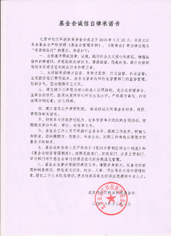 诚信建设承诺书