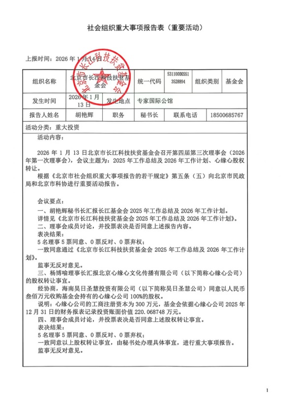 社会组织重大事项报告表(重要活动)-第四届第三次理事会